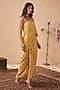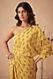 Yellow Crepe Printed & Embroidered One-Shoulder Dress