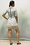 Featuring a grey dress in cotton poplin base with geometric detailing and checkered facing on the sleeves. It has a zip closure at the back.