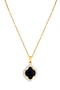 Gold Finish Cubic Zirconia & Black Onyx Pendant Necklace In Sterling Silver