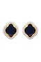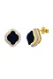 Gold Finish Cubic Zirconia & Black Onyx Stud Earrings In Sterling Silver