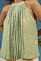 Featuring an olive green in-cut top in linen base with motifs embroidery. It is paired with matching pants.