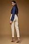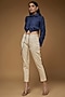 Featuring a blue crop shirt in linen base with a high collar, straight sleeves, and drawstring. Style it with sunglasses and heels for vacations.