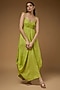 Featuring a green maxi dress in linen base with adjustable shoulder tie-ups. Accessorise with a statement necklace and heels for a complete look.