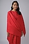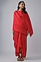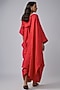 Featuring a red narrow skirt in linen base with side drape and seam pockets. It is paired with a belt. Accentuate it with minimal jewellery and heels for a complete look.