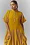 Featuring a yellow circular deconstructed dress in linen base with a bandhgala and inseam pocket. Style it with statement earrings and heels for a complete look.