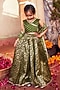 Green Banarasi Silk Brocade Lehenga Set For Girls