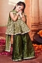 Green Banarasi Silk Palazzo Pant Set For Girls