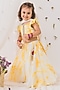 Ivory & Yellow Silk Tie-Dye Lehenga Set For Girls