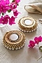Decorate your house with this beautiful set of gold and white candle holders with pearls. Made from mixed metal and iron, they are handcrafted by skilled craftsmen and makes a perfect gift option.