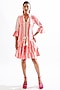 Featuring a pink and white ruffled shirt dress in jacquard and yarn dye base with print.