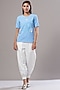 Featuring a cobalt blue t-shirt in luxury banana crepe base with beads embroidery. It is paired with contrasting white jogger pants.