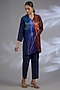 Featuring a blue asymmetrical kurta in dupion silk base. It is paired with pants. Style it with statement earrings, soft curls and block heels, perfect for festive gatherings or a polished office wear.