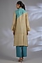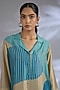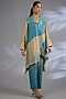 Featuring a blue asymmetrical kurta in dupion silk base. It is paired with pants. Style it with statement earrings, soft curls and block heels, perfect for festive gatherings or a polished office wear.