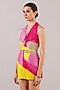 Featuring a bright pink and yellow halter dress in dupion silk base. Accentuate it with dangler earrings and heels for an evening wear.