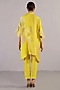 Featuring a bright yellow kaftan in dupion silk base with side-tie details. It is paired with straight pants. Accentuate it with dangler earrings and heels for festive occasions.