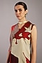 Featuring a crimson red asymmetrical-cut jacket in dupion silk base. It is paired with narrow pants. Accentuate it with dangler earrings and heels for casual chic vibe.