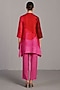 Featuring a fuchsia pink short kurta in korean linen base with side tails, 3/4th sleeves, mandarin collar. It is paired with straight pants. Accentuate it with hoop earrings and flats for a brunch date or sundowner.
