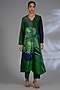 Featuring a green kurta in dupion silk and soft silk fabric base with modern design. It is paired with straight pants. Style it with statement earrings, soft curls and block heels, perfect for festive gatherings or formal celebrations.