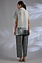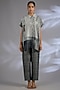 Featuring a grey asymmetrical top in dupion silk base. It is paired with pants. Style it with statement earrings, soft curls and block heels, perfect for a polished office wear.