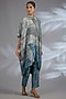 Featuring a grey asymmetric kurta in dupion silk base. It is paired with pants. Style it with statement earrings, soft curls and block heels, perfect for cocktail parties, festive gatherings, or formal celebrations.