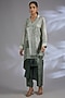 Featuring a grey kurta in dupion silk and soft silk fabric base with a modern design and 3/4th sleeves. It is paired with straight pants. Style it with statement earrings, soft curls and block heels, perfect for festive gatherings or a polished office wear.