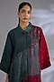 Featuring a maroon high-low kurta in dupion silk and soft silk fabric base with short wide sleeves. It is paired with straight pants. Style it with statement earrings, soft curls and block heels, perfect for festive gatherings or formal celebrations.