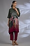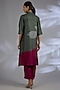 Featuring a maroon high-low kurta in dupion silk and soft silk fabric base with short wide sleeves. It is paired with straight pants. Style it with statement earrings, soft curls and block heels, perfect for festive gatherings or formal celebrations.