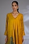 Featuring a multi-colored asymmetrical kurta in dupion silk base. It is paired with pants. Style it with statement earrings, soft curls and block heels, perfect for festive gatherings or formal celebrations.
