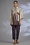 Featuring a multi-colored asymmetrical kurta in dupion silk base. It is paired with wine pants. Style it with statement earrings, soft curls and block heels, perfect for festive gatherings or a polished office wear.