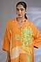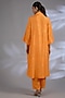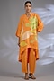 Featuring an orange asymmetrical kurta in dupion silk base. It is paired with pants. Style it with statement earrings, soft curls and block heels, perfect for festive gatherings or a polished office wear.