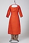 Featuring an orange kurta in handloom silk base with hand painting. It is paired with contrasting striped pants.