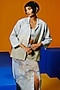 Featuring a pastel blue and green jacket in korean linen base with full sleeves. It is paired with a bustier and a long skirt. Accentuate it with hoop earrings and flats for a brunch date or a casual evening.