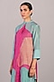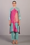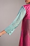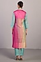 Featuring a pink and blue kurta in linen silk base with long sleeves and a round collar. It is paired with straight pants. Accentuate it with hoop earrings and flats for family gatherings.