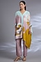 Featuring a pink asymmetric kurta in dupion silk base. It is paired with pants. Style it with statement earrings, soft curls and block heels, perfect for cocktail parties, festive gatherings, or formal celebrations.