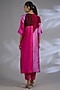 Featuring a pink kurta in dupion silk and soft silk fabric base with a modern design and 3/4th sleeves. It is paired with straight pants. Style it with statement earrings, soft curls and block heels, perfect for festive gatherings or formal celebrations.