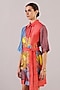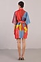 Featuring a red and blue mini dress in dupion silk base with a point collar, wide sleeves. It is paired with a broad waist belt. Accentuate it with dangler earrings and heels for a casual wear.