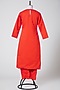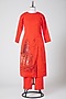 Featuring a red dress in viscose base with hand painting. It is paired with matching palazzo pants.