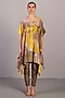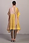 Featuring a smoky beige and bright yellow kurta in linen silk base with short sleeves and a point collar. It is paired with straight pants. Accentuate it with hoop earrings and flats for family gatherings.
