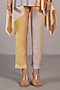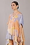 Featuring a soft blue and orange top in linen silk base with short sleeves and a v-neck collar. It is paired with straight pants. Accentuate it with hoop earrings and flats for casual outings or family gatherings.