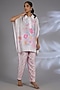 Featuring a white asymmetrical kurta in dupion silk base. It is paired with pants. Style it with statement earrings, soft curls and block heels, perfect for festive gatherings or formal celebrations.