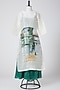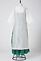 Featuring a white kurta in linen silk base with hand painting. It is paired with a contrasting green dress.