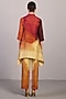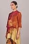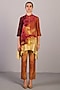 Featuring a wine and cream top in linen silk base with long sleeves and a round collar. It is paired with straight pants. Accentuate it with hoop earrings and flats for a brunch date or sundowner.
