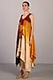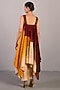 Featuring a wine and cream gathered dress in linen silk base with cut sleeves and wide strappy v-neck. It is paired with straight pants. Accentuate it with hoop earrings and flats for a brunch date or sundowner.