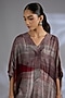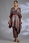Featuring a wine asymmetrical kurta in dupion silk base. It is paired with pants. Style it with statement earrings, soft curls and block heels, perfect for festive gatherings or formal celebrations.