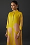 Featuring a yellow straight kurta in shimmer silk satin base with abstract print. It is paired with pants. Accentuate it with statement earrings and heels for a festive occasion, haldi or sangeet ceremony.