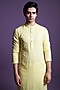 Featuring a lemon yellow kurta in chikankari georgette base. It is paired with contrasting pants.