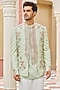 Mint Green Pure Bhagalpuri Silk Floral Embroidered Bandhgala Jacket Set