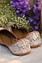 Featuring a pair of grey juttis in crepe base with gota patti hand embroidery and tie-dye. It has a genuine leather underlining and 2mm inch heel.