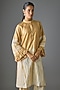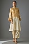 Featuring a beige kurta in silk base. It is paired with pants. Style it with statement earrings, soft curls and block heels, perfect for festive gatherings.