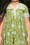 Featuring a green gathered dress in cotton base with hand block print and white net detailing.